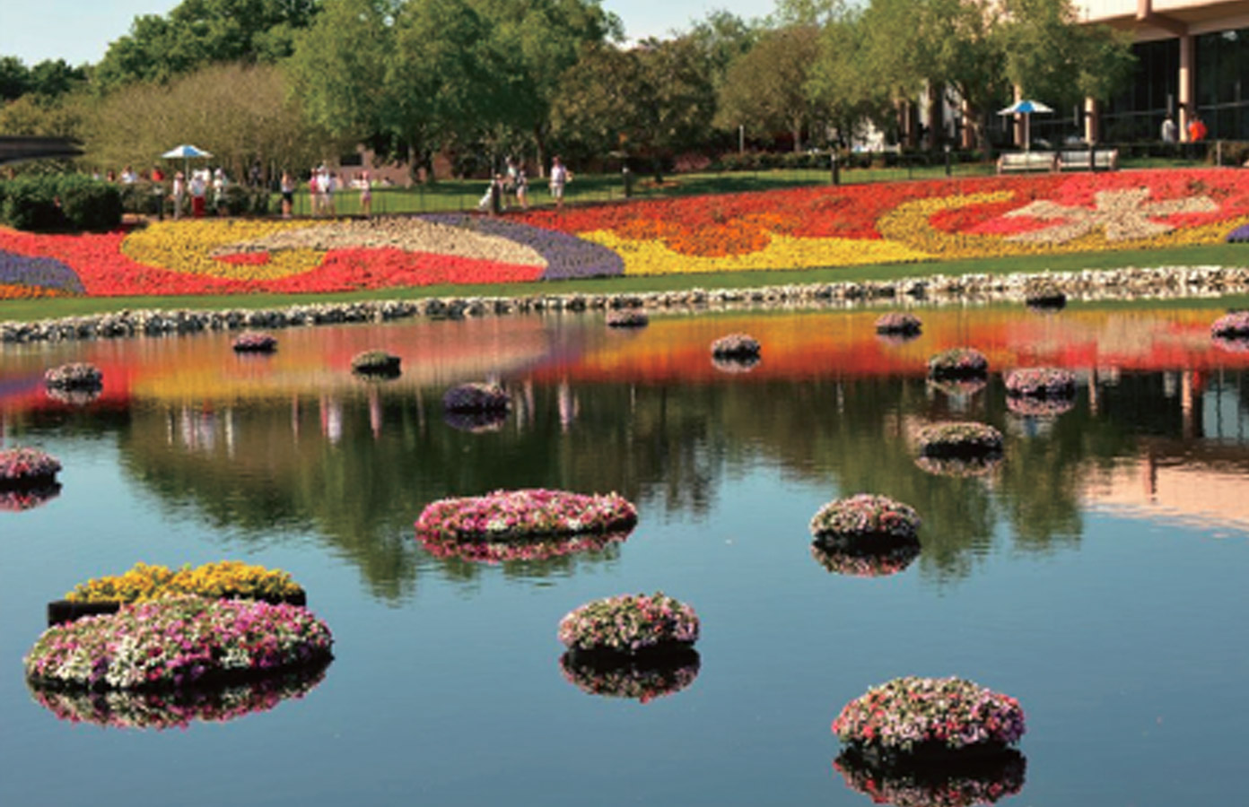 百奧源浮動(dòng)濕地為季節(jié)型草花提供良好的生長(zhǎng)環(huán)境,花卉直接在纖維載體中生長(zhǎng),維護(hù)便捷,適用于多種景觀植物,形成獨(dú)具特色的水上園林景觀。