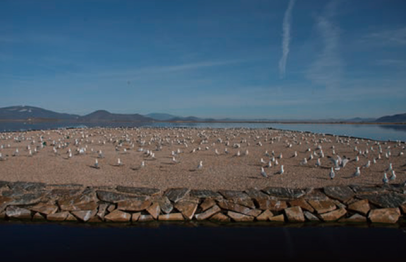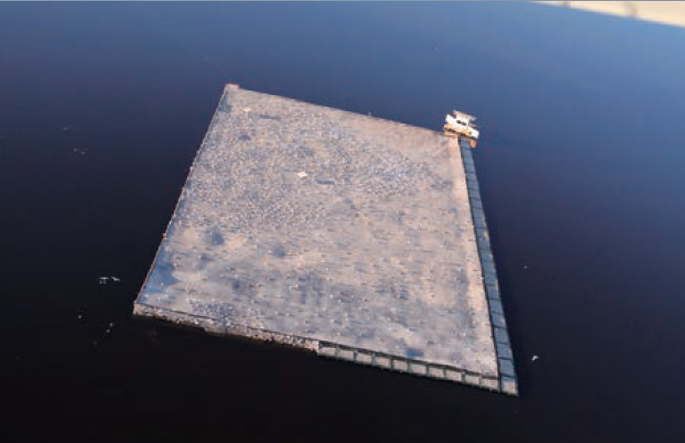 項(xiàng)目以百奧源®浮動(dòng)濕地載體為基質(zhì)在俄勒岡州(Dutchy湖)、加利福尼亞州(Sheepy湖)的兩個(gè)湖泊內(nèi)分別布設(shè)浮動(dòng)棲息地,作為紅嘴鷗生息、繁育場(chǎng)所。浮動(dòng)濕地棲息地以礫石為表面以適應(yīng)紅嘴鷗棲息需求。項(xiàng)目采用百奧源®浮動(dòng)濕地構(gòu)建不僅滿足了水位變化條件棲息地面積不變的要求,同時(shí)大大降低了工程造價(jià)。