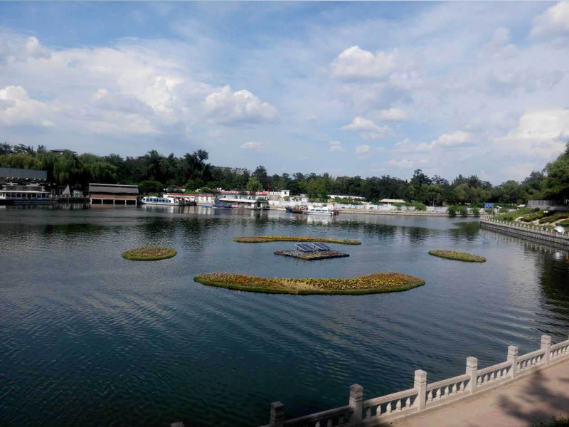 (3)與傳統(tǒng)的河湖水體旁路一體化水處理站、人工濕地系統(tǒng)相比,浮動式生態(tài)凈水廠具有不占用岸上土地資源、無堵塞、無污泥處置、幾乎零運行維護(hù)成本、無需系統(tǒng)進(jìn)出水設(shè)計并對自然水體流動性零干擾、且可促進(jìn)水體生態(tài)系統(tǒng)的自我修復(fù)與生態(tài)多樣性恢復(fù);