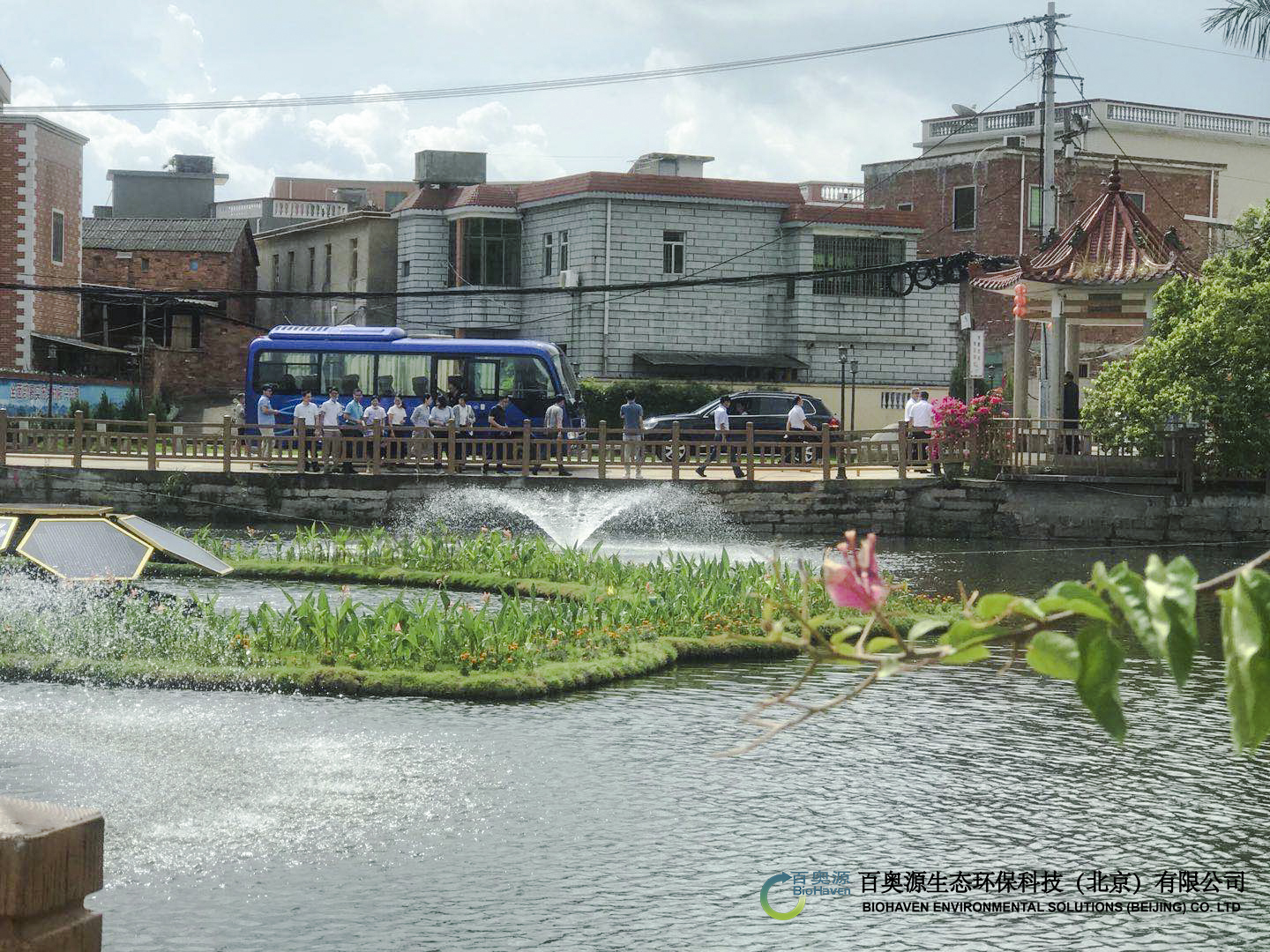 漳州角美鎮(zhèn)埔尾村祠堂大塘為白石林先生祠、進(jìn)士牌及傳統(tǒng)民居等古建筑環(huán)繞,是埔尾村重要的水景觀節(jié)點(diǎn),更是漳州臺(tái)商投資區(qū)廉政教育基地及埔尾村鄉(xiāng)賢鄉(xiāng)訓(xùn)館的主要配套景點(diǎn)。埔尾村扎實(shí)推進(jìn)鄉(xiāng)村振興戰(zhàn)略,在實(shí)施農(nóng)村污水收集處理工程的基礎(chǔ)上,結(jié)合截污納管、補(bǔ)水措施等工程,創(chuàng)新采用的浮動(dòng)凈水廠技術(shù),以生態(tài)手段同步實(shí)現(xiàn)水質(zhì)改善與景觀提升,打造大塘優(yōu)美水環(huán)境的目標(biāo),并與埔尾村古建筑景觀互映互襯,彰顯千年古村落的獨(dú)有生態(tài)之美。